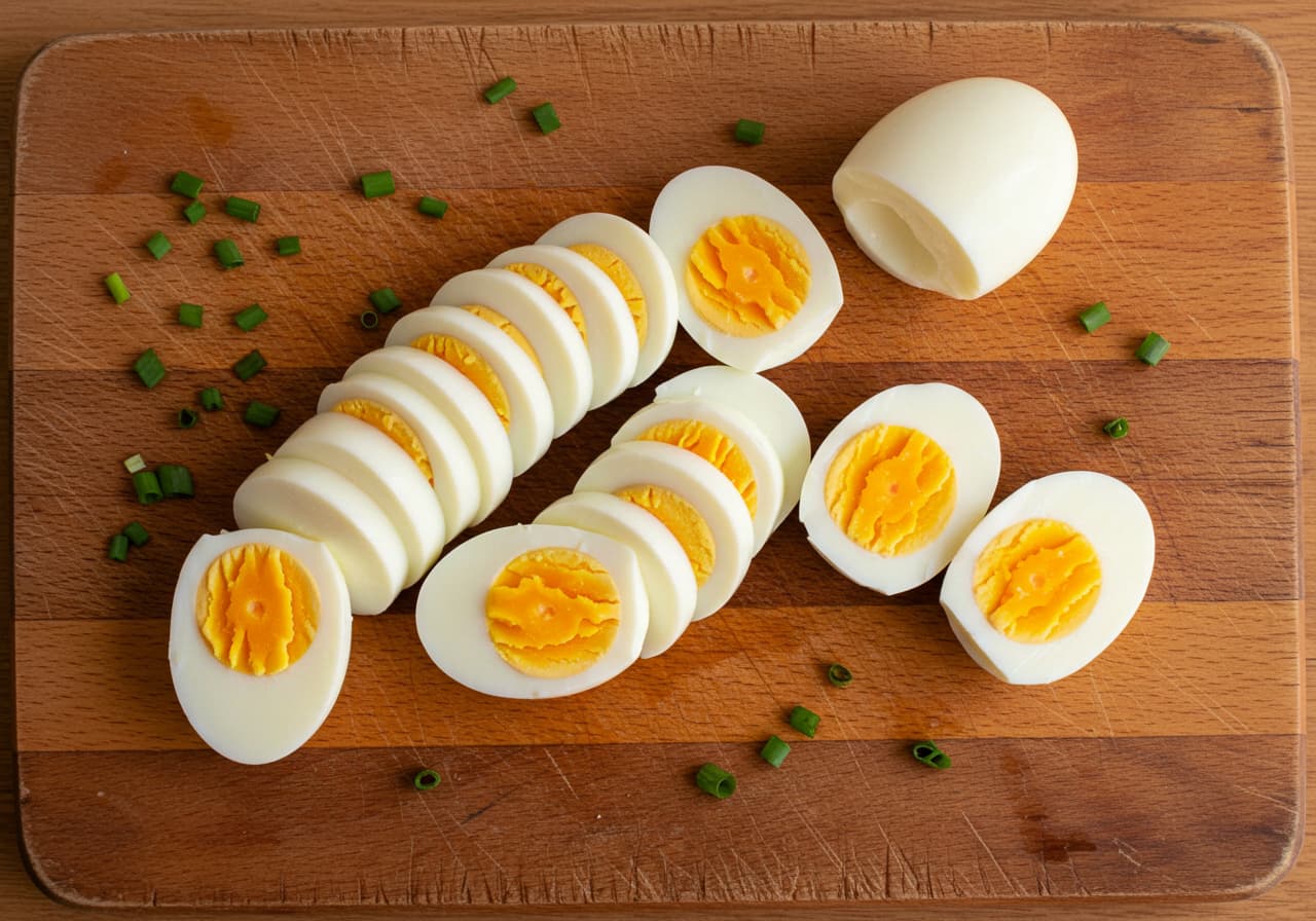 - 삶은 달걀은 껍질을 까고 적당히 썰어주세요.
